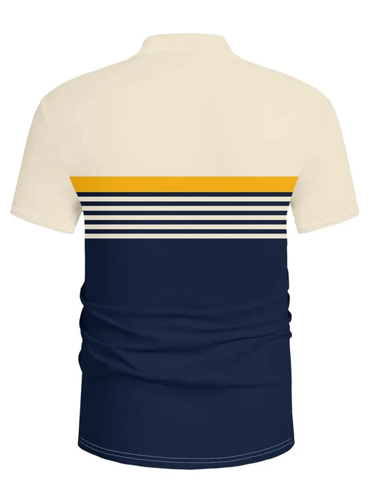 Men'S Casual Short Sleeve Polo Shirt with 3D Horse Print Striped Color Block Design Sporty Style Collared Golf Shirt for Summer
